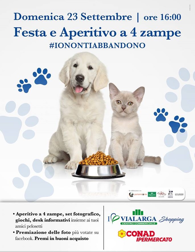 Un evento a conclusione di Ti porto in vacanza con me, campagna contro l’abbandono lanciata su Facebook dal centro commerciale Vialarga nel giugno scorso, con il patrocinio del Comune di Bologna e delle Associazioni ENPA Bologna, LAV Bologna, Una Zampa sul Cuore, Il Vagabondo, Follow the Bunny.