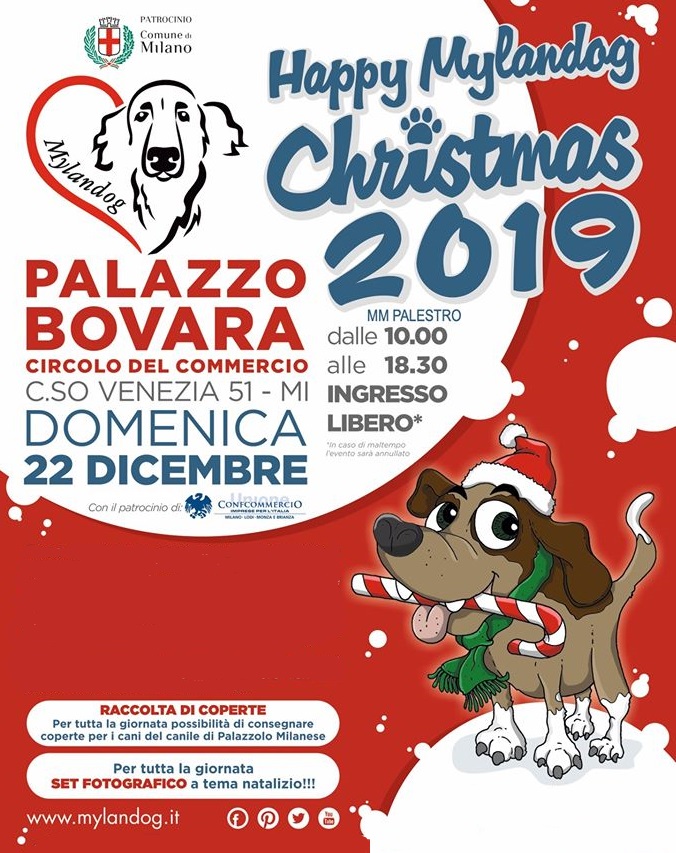 Il villaggio di Natale per cani, organizzato dalla associazione culturale Mylandog e giunto alla sesta edizione, sarà ospitato nella bellissima corte di Palazzo Bovara in corso Venezia 51.