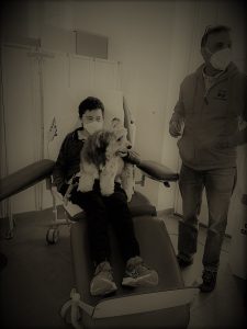 La paura l’ansia collegata all’invasività di alcune necessarie pratiche cliniche, sono fenomeni molto presenti all’interno del percorso di cura dei piccoli pazienti e non vanno sottovalutati. Ancora prima del Vaccination Center, abbiamo testato, in 20 anni di pratica clinica e psicoeducazionale dentro la struttura nosocomiale fiorentina, la rilevanza e l’effetti benefici della presenza dell’animale sia Centro Prelievi, che nelle procedure specifiche dell’odontostomatologia, o anche in setting come quello neurochirurgico o di riabilitazione legato a specifiche manovre sanitarie. Non raramente ci è capitato di vedere avanzare in tanti luoghi dell’ospedale il “diritto alla relazione con il cane” come strumento di libertà espressiva nei bambini, e come una particolare amicizia con una funzione speciale. Diritto a cui medici e infermieri non hanno mai derogato. Il legame con l’animale nella cura dei bambini e nello specifico di quella pediatrica, rappresenta un elemento di calma sicurezza, un cuscinetto emotivo su cui appoggiarsi, senza preoccupazioni, ma con naturalezza. Per prendere una coraggio e una gentile iniezione di fiducia in se.