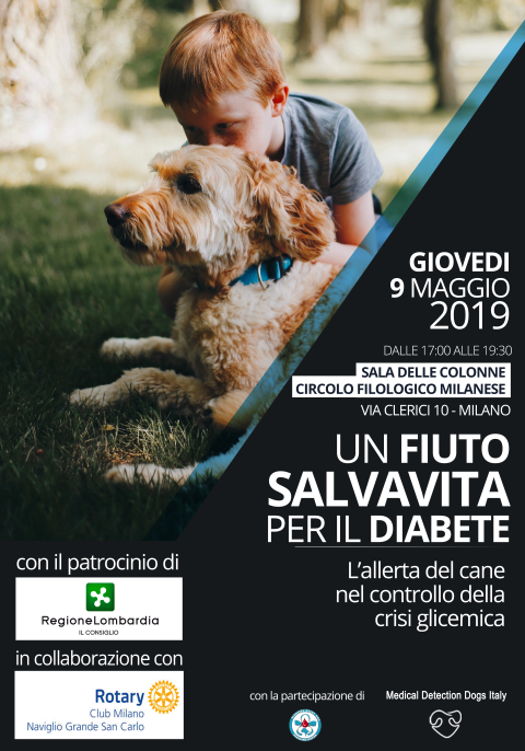 Rotary Club Milano Naviglio Grande San Carlo, fondato nel 1985. Il Rotary si dà come principale obiettivo quello di fare dei “service”, cioè delle opere di utilità sociale in campo sanitario, educativo, etc. In questo spirito il club ha deciso di dare sostegno a che prepara i cani d’assistenza per i diabetici. Sede del Distretto Rotary: via A. Canova 19/A, Milano. Contatti con il club Milano N.G.S.C: segreteria Ilaria Cardani, ilariaorama@gmail.com, capo progetto Gabriella Borsatti, gabriella.borsatti@fastwebnet.it.
