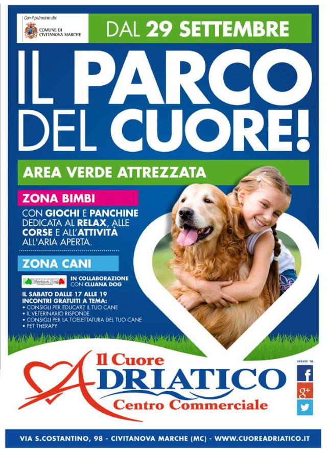 Il PARCO DEL CUORE – questo il nome dato all’area dalla Proprietà – sarà gestito in collaborazione con l’Associazione Cluana Dog di Civitanova Marche che realizzerà anche dei programmi di incontri gratuiti destinati all’utenza nei sabati alle 17 alle 19; di seguito gli argomenti che verranno affrontati: